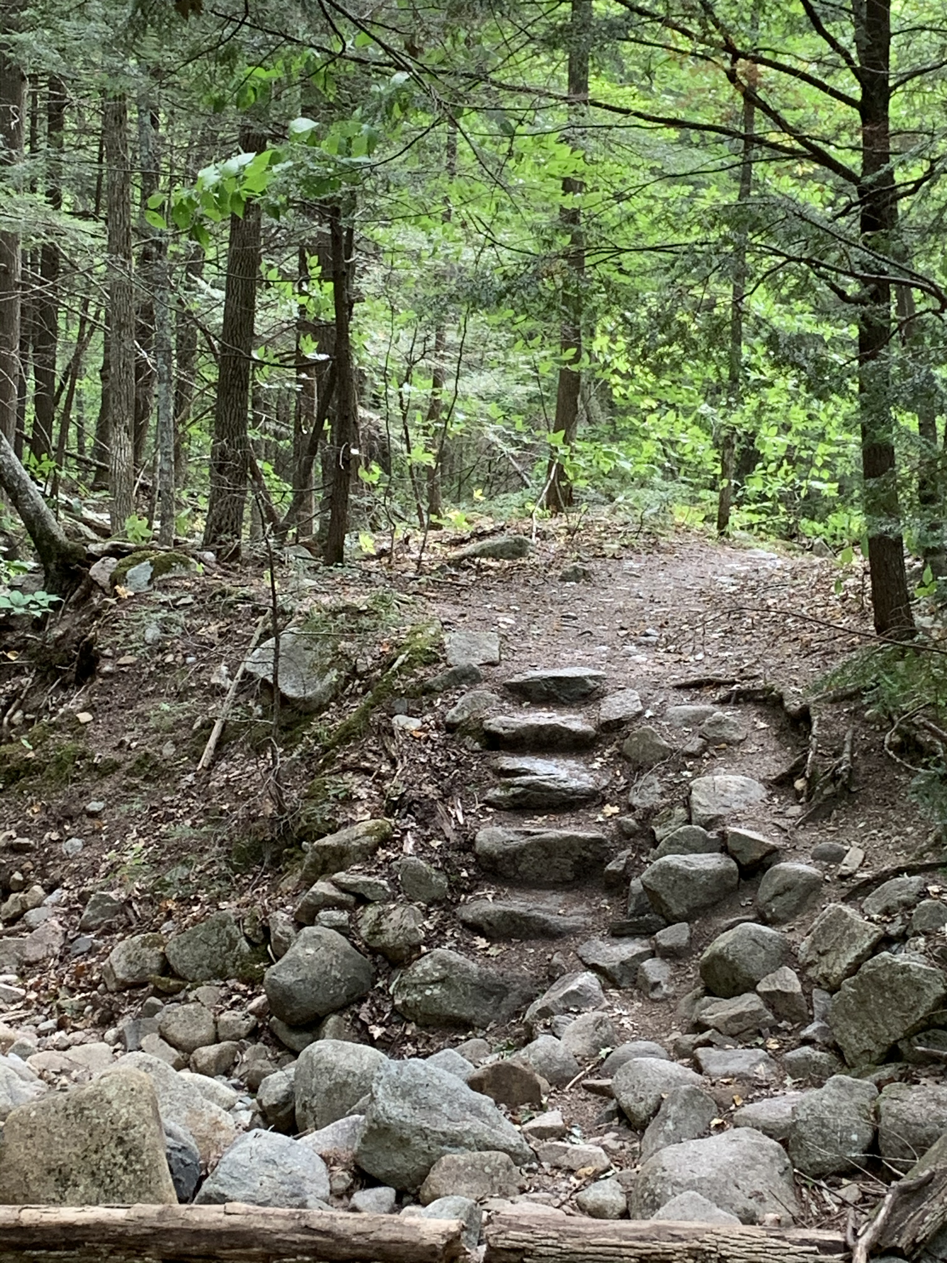 The trail began to get rocky, and stayed rocky for what felt like forever. One stretch I counted 215 rock steps. It was like an endless stairmaster. It was similar to Tecumseh on some points, where you could see what seemed like the top of the stair stretch, but it was just a turn in the trail that would reveal…more stone stairs. I’m sure if we’d had fresh legs this would have been a lot easier, but as we were, it was tough. We both fell silent as we pushed ourselves to get up to the summit.