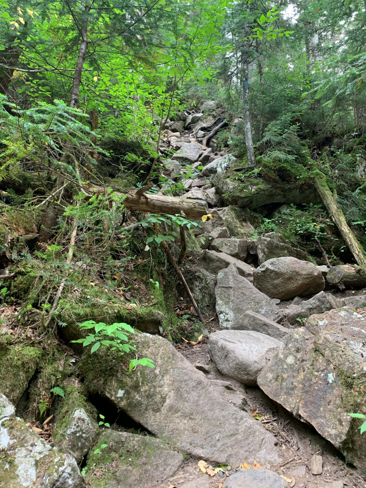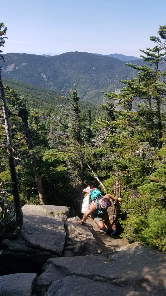 The trail itself is rocky, but near the summit of Jackson there are a few points that are hand and feet “climbs”. Not actual rock climbing, but definitely not just a step up. I remember being terrified of this when I climbed it with my son, it was much easier this time.