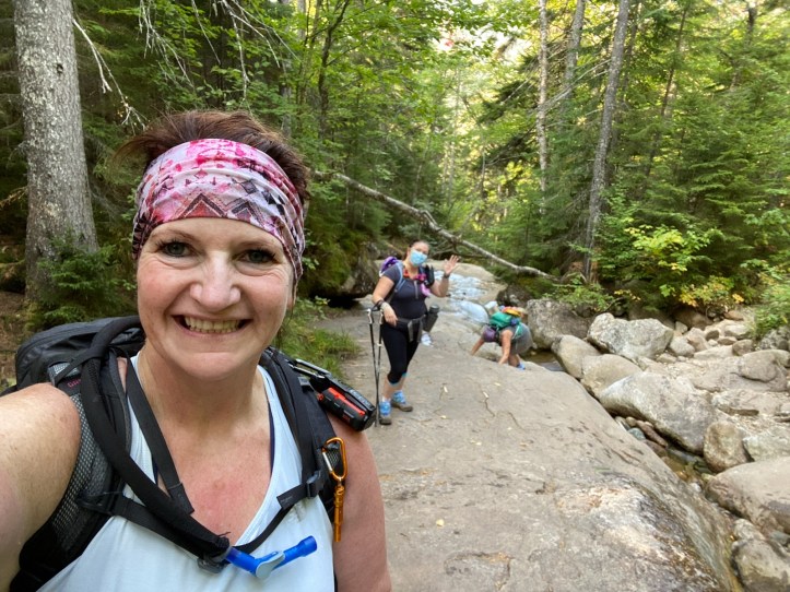 Since many people have taken up hiking during this pandemic, we figured the trails would be crowded. We wanted to get an early start, so we decided to camp at Dry River Campground the night before. I also had some new backpacking gear that I wanted to try out with the safety of my car and friends before a real backpacking trip. The three of us hadn’t gotten together in a long time, so it was lovely to catch up around a campfire (6 feet apart and/or masked).