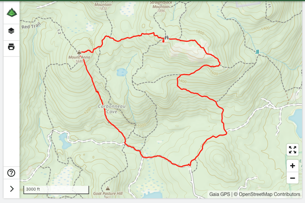 You can see I did an outer loop, which was the Anna Goat Trail on the left and Blueberry Pasture coming back down on the right. But as I said in the text, I was happy to be doing a new-to-me trail and Right Turn assured me it was do-able.