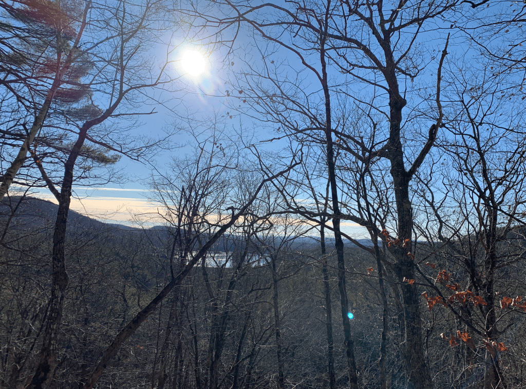We continued along the trail, which then curved along the top of a cliff. We all had our microspikes and it wasn’t a problem. Somewhere at this point, Right Turn said that she had never been on this trail. She had ascended Anna Goat. The last time she had hiked this hike, she had missed the right turn onto Anna Goat, and so when she turned onto Precipice, she thought she was correctly making THAT turn. She apologized for her mistake. To which I replied, she hadn’t made a mistake, she took us on exactly the trail she had texted to us! As I said, it’s always an adventure with Right Turn. I wouldn’t change a thing!