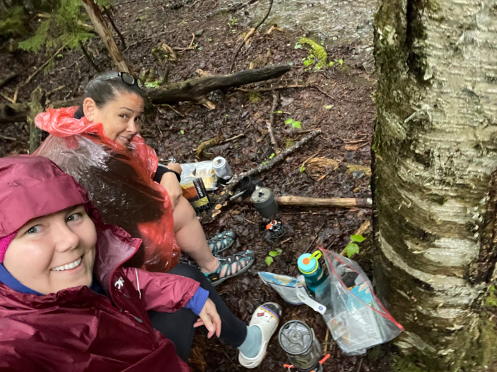 So we set up in the rain/mist. It stopped enough once we were done that we could make and eat dinner. Fun fact, there was so much water on the trail, that we actually gathered our water to filter from the trail itself. That was a first.