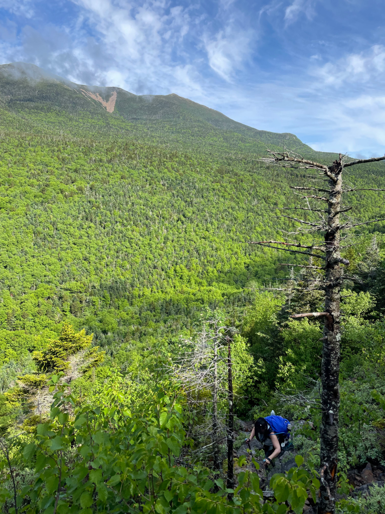The trail to Owl’s Head is very different than the day before. Sunday we gained 1500 feet over 7.5 miles. We would now be gaining 1300 feet in half a mile. That’s a 49% grade. 49%. Oh yeah, and it’s up a rock slide. I didn’t take any photos because I WAS CLIMBING UP A ROCK SLIDE. As in, put down your foot and rocks move around. Some parts required hands and feet, but it wasn’t actually that bad. I think the worst part was not knowing how much farther it would be and if it might get worse. It also had some break spots so you could gather yourself before the next part. There were also a few views.