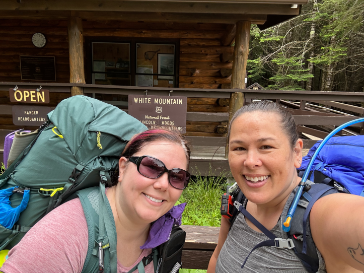 A volunteer at the ranger station came out to chat with us. Seeing our gear, she asked where we were going and if we were backpacking. We said Owl’s Head and that we were backpacking. She asked us about our food storage since there had been recent bear activity. We’ve got the necessary equipment and were prepared. (Side note, if you’re not prepared, the ranger station has bear canisters to loan out!). She also cautioned us on the water crossings. It’s rained for what feels like forever. I’d been monitoring the water levels (yes, there’s a website for that). And they had spiked, but were already going back down. We had water shoes and are risk averse. We assured her we’d be careful and turn back if it was bad.