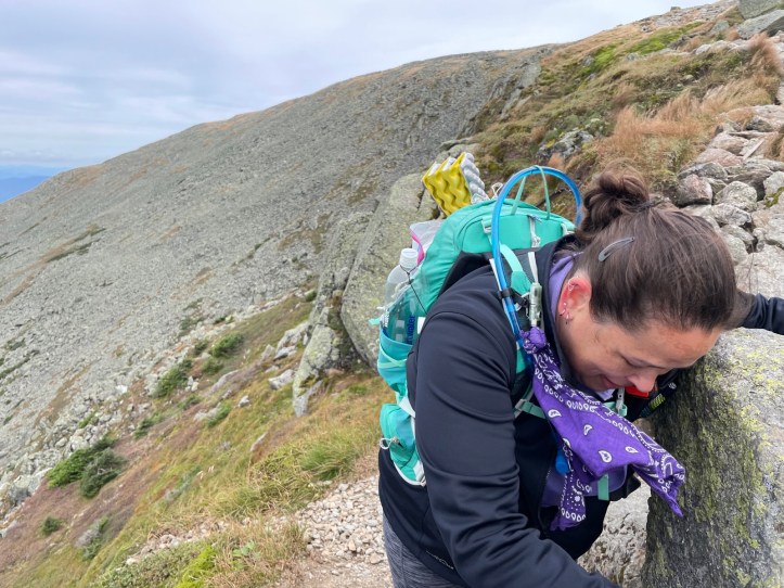 Now, we’d done this part as well, but it was just a few weeks ago and part of our Presi traverse. It had been windy and rainy. We couldn’t see more than a few feet ahead of us. The rocks were all wet. Not at all a good time and definitely no good views.