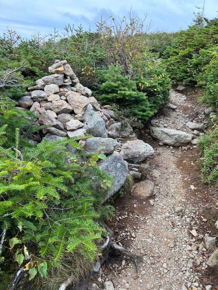 This is the trail. Marked by cairns. I’ve zoomed in and circled them on the right. While they’re easy to see when you’re standing by one, they can be harder to see in the distance. This was why I was so worried on our last hike that we would be hiking in the dark. There’s no way a headlamp would illuminate far enough away to be able to see where the next cairn is located.