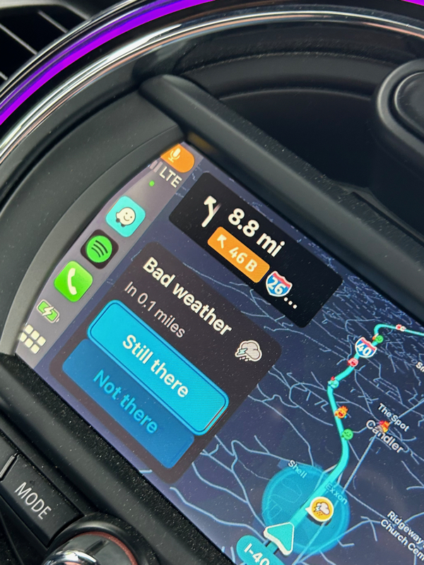 Knowing we had a long drive ahead of us, we decided to start home on Saturday. Unfortunately, Saturday and Sunday meant driving home in two straight days of rain. We saw several new Waze alerts including “Bad weather” and “Fog”.