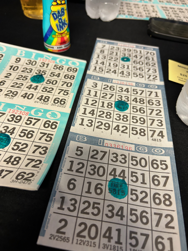 The event hosts a bingo night, with proceeds going to the local food bank. Great fun was had!