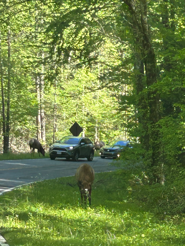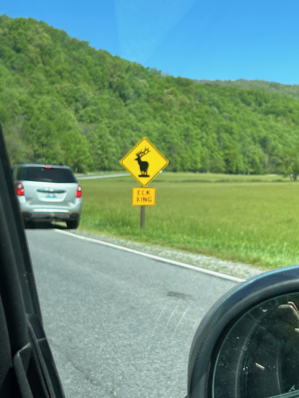Not long after entering the national park, we saw lots of elk crossing. Appropriately right next to a sign about elk crossing.
