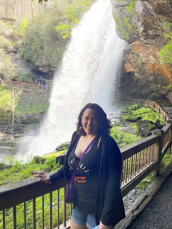 It was Monday and the event wouldn’t officially begin until Wednesday, so we set off on an adventure. As I mentioned in Part 1, we met up with friends at Fontana. They’ve been going to this event for years (like nearly 20 years), so they know all the great spots to go to. The group of us went to the Nantahala National Forest and Bridal Veil Falls. I laughed because I’ve been to Bridal Veil Falls in Oregon AND New Hampshire. There are two in North Carolina! And more than 20 in the United States. This Bridal Veil Falls was lovely and you can walk behind them!