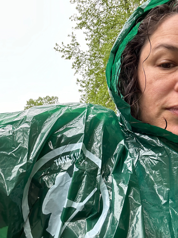 Tuesday we slept in. Well I slept in, anyway. I wandered over to our friends’ cabin midmorning and breakfast and coffee magically appeared. It’s good to be me. It was sprinkling, so I wore the poncho I bought at Long Trail Brewery in Vermont during MINIs Take Vermont.