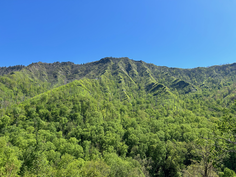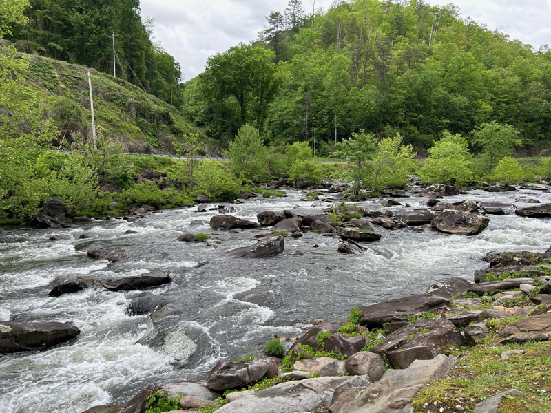 The short version of Elkmont, is that it was a town that became a vacation destination thanks to a nearby logging train. The Great Smoky National Park was created in 1934 and the residents of Elkmont could sell their homes for full value and move, or sell to the park and lease it for a discount. The park was unable to maintain the roughly 70 buildings and they began to deteriorate over time, leading to calling it the Elkmont Ghost Town. 19 buildings were selected by the National Park Service to preserve and the rest were demolished. So there is a little street lined with the cabins that you can walk in and around.