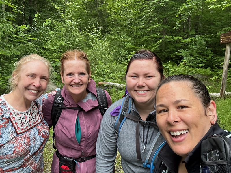 A migraine, a smashed finger, and rainy slabs aren’t my ideas of a great hike. I really lived up to my trail name on this one, apologizing every 5 minutes it seemed. This was a harder day than I had planned and expected, but it was sooooo nice to hike with both Rainbow and Right Turn again. And to meet Kate (and Maisie)!
