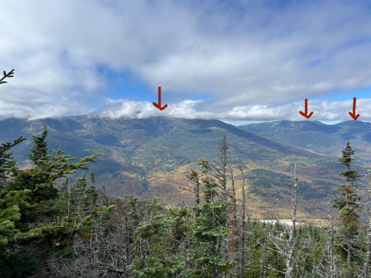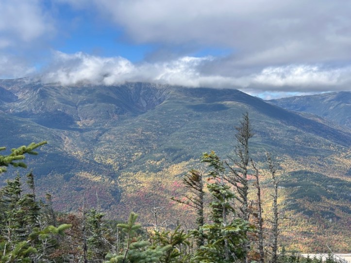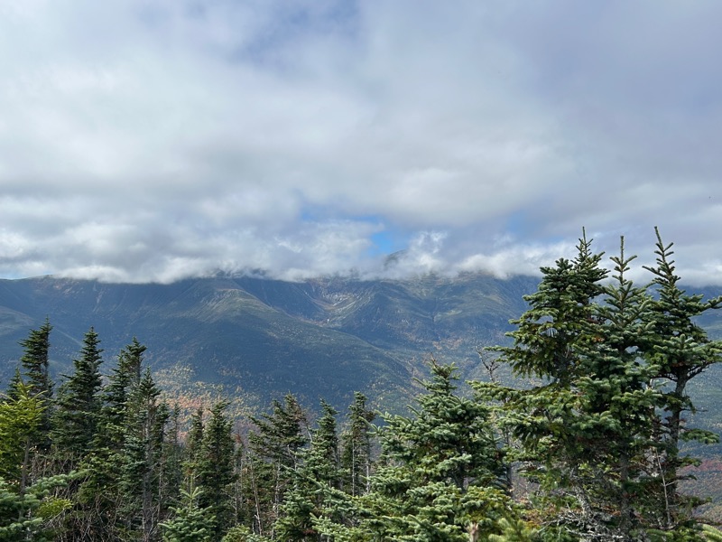 On the left in the clouds, Boott Spur and Washington. On the right, Adams and Madison.