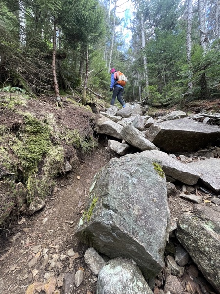 After the boggy bit around the lake, the trail begins to ascend. One of the ladies said something like “oh this isn’t too bad” and I laughed and said “just wait”. I’d done this hike in 2019 and I knew what was ahead.