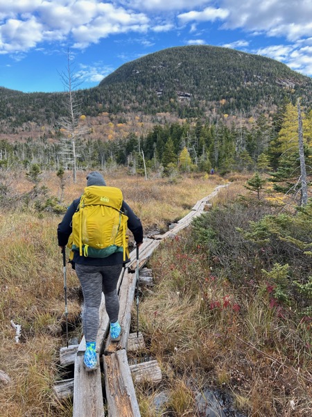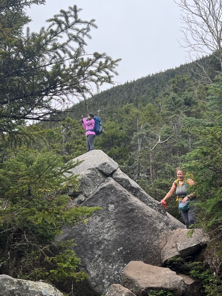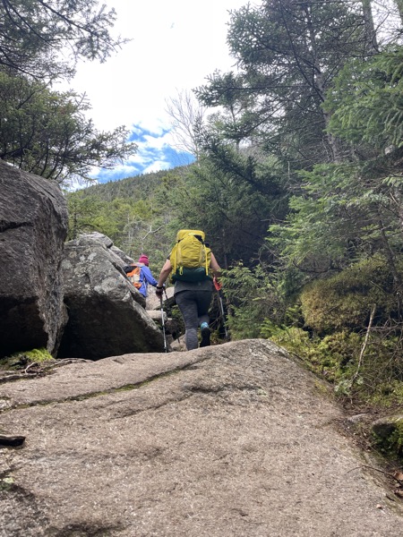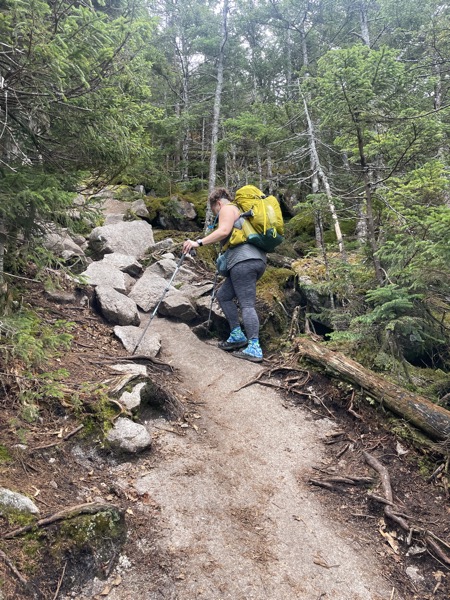 I had been hoping to skip the hut on our way back. It would cut a 1/2 mile off of our trek back to the car. However, Thoreau had run out of water. We had another discussion. Awestruck and I both had water. There were copious amounts of filterable water all around us. We decided we were good to skip the hut, and we’d just grab and filter water once we came upon a water source. Literally 20 yards later we crossed a stream, so I grabbed a liter of water. We figured we’d filter it if she needed it, but we’d keep going for now. We didn’t want to take too long in case the weather decided to get worse. She didn’t need the water, and we made it back to Lafayette Place no problem.