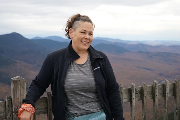 Suddenly, there was a group of kids acting obnoxious. Awestruck was confused. I explained that we had come to the summit area and these were tourists that had taken the tram up. Cannon Mountain has an aerial tramway that takes people from the parking lot to the summit in ten minutes. There is a “rim trail”, which is a gravel path circling the summit. There is an observation deck. And there is a “cafe”, more on that in a moment.