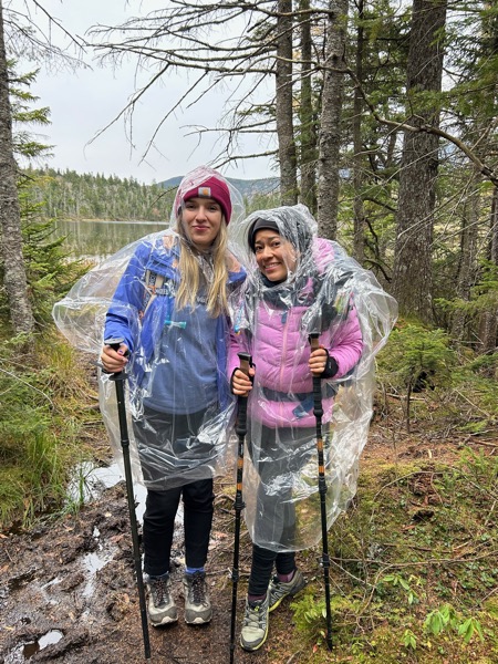 On an earlier hike, I had given the ladies rain ponchos. As we were descending, it began to SNOW! The ladies were VERY excited to pull out their ponchos. It was just a brief flurry, then a little bit of rain. The perfect amount to be able to use new gear, but not be miserable.