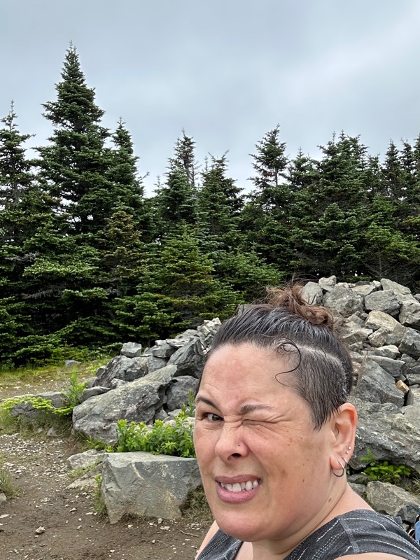 So we were prepared for rain and bugs. The forecast had rain, and we were just at the end of the typical black fly season. Very fortunately for us, we didn’t need either preparation. There were a few very short sprinkles at the start, and then no rain. There were a few bugs at the summit, but nothing requiring a head net.