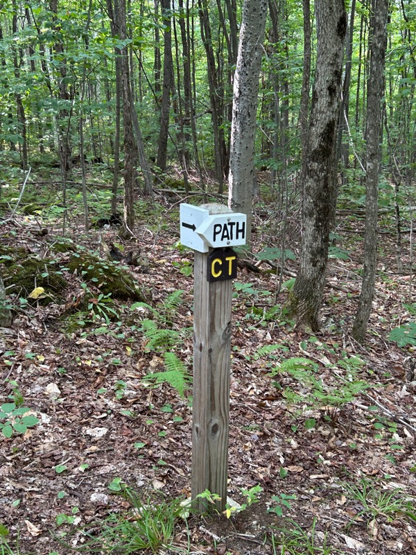 As I said, after a mile, it gets steep. At about the 1 mile mark, we crossed a stream/brook. You go up the embankment, see this sign for the path and the “CT”, which is the Cohos Trail. The Cohos Trail is a 170 mile trail that overlaps many different trails, stretching from Bartlett, NH to Canada.