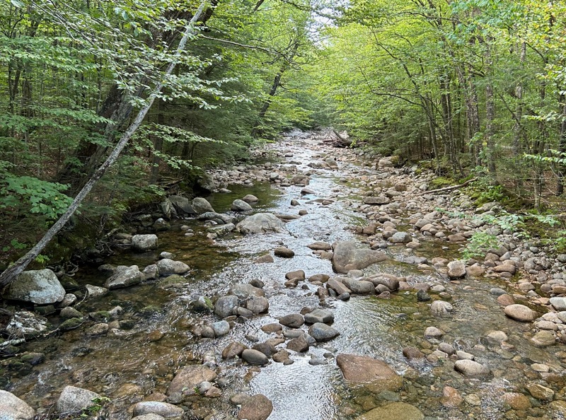 Something that is often confusing are references to Pemi or Pemigewasset. Pemi is short for Pemigewasset, but name is used EVERYWHERE for many different things. Here, we see the Pemi (Pemigewasset) River. We also see the sign for the Pemi Trail, as I mentioned a nice flat, easy trail. Not to be confused with the Pemi Loop, which is a ~30 mile hike with ~9000 feet of elevation gain. The Pemi LOOP never once encounters the Pemi Trail, nor any trail named “Pemi”, but is named so because it loops around/through the Pemigewasset Wilderness. There is also Mt. Pemigewasset (52WAV), which is NOT in the Pemigewasset Wilderness, nor on the Pemi loop, nor is it accessed by the Pemi Trail, but instead by the Mt. Pemigewasset Trail. Confused? Gee, I don’t know why you would be. So anyway, we passed the Pemi Trail, crossed the Pemi River, headed for the Pemi Wilderness, and part of the Pemi Loop.