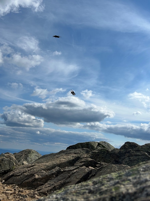As I sat there (during the time when no one else was there), I heard what sounded like a helicopter overhead. I looked up to see two ravens (according to the tentsite caretaker, they were likely ravens). I had no idea their wings were so loud! They kept swooping around in the air currents at the summit. I moved every so often so they didn’t think I was a dead body.