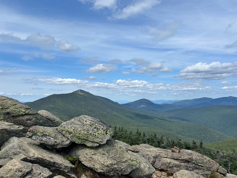 This video starts at Lincoln, then Lafayette. In the foreground (ish) is Owl’s Head. In the middle range, Garfield, Galehead, swinging around to the Bonds. In the background, 3.5 seconds in, Mt. Washington. At the 9 second mark, Mount Flume and the Flume slide are prominent. Swinging further around, you can see highway 93 below. Then the Kinsmans, then Cannon (and the Cannon cliffs), and back to Lincoln. As usual, very cool to think to myself, I’ve hiked those summits! And for the ladies, they’ve hiked some, and will be hiking the rest!