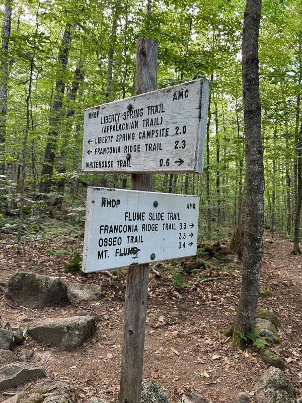 Whitehouse trail is a short walk in the woods, which meets up with the Franconia Notch Recreation Trail (or Franconia Notch Bike Path, depending on which map you look at). The recreation trail is part of the AT! And it follows along the Pemigewasset River.