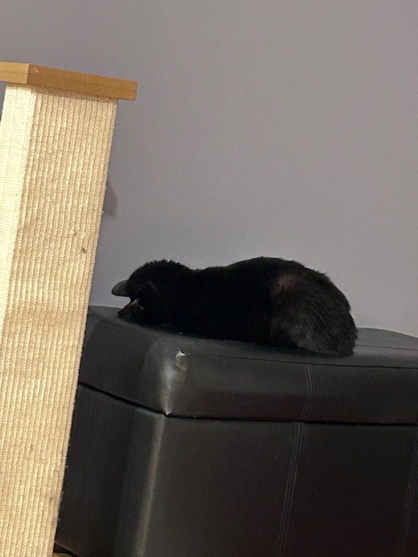 Much of the morning Cali was on ottoman. Happy to see her out of the cat tree more and more.