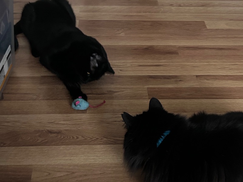 So mostly a week of full integration and I’m so happy to report that things are going well. I’m nervous about their upcoming vet visit (mostly about getting them into carriers and not erasing all of the trust I’ve built). We will continue socializing and just being a happy cat family.
